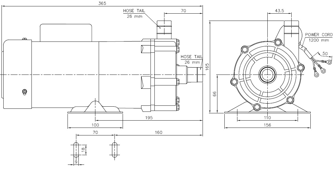 Magnetkreiselpumpe mit Einphasenmotor 230 Volt, 50/60 Hz